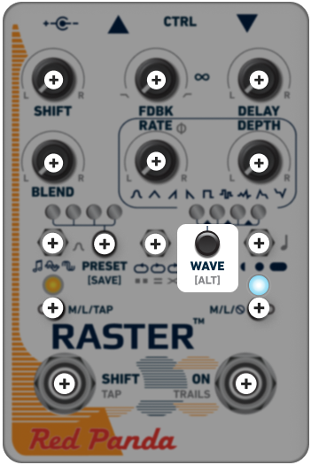 The main LED will turn light blue while you are accessing the [ALT] menu. When you release the [ALT] button, the LED goes back to red and the controls return to their primary functions.