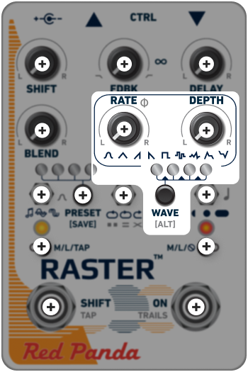 Most of the [ALT] functions are for customizing the stereo field. If your rig is mono, the only [ALT] controls to consider are the left and right toggle switches, which control modulation assignment and delay divisions (respectively) and the upper middle knob, which introduces filtering for brighter or darker repeats.